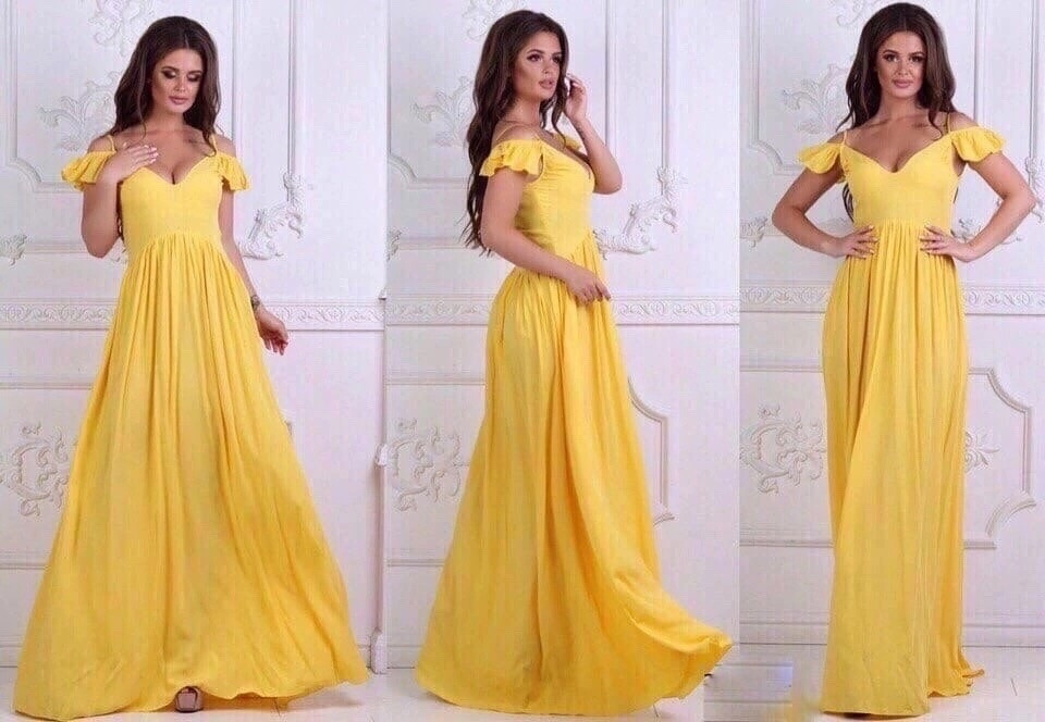 Довгий літній сарафан зі штапеля, з боків кишені, фасон пишний