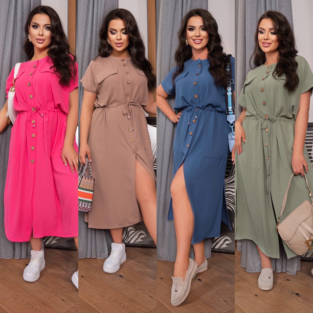 Плаття халат літнього ґудзика, з кишенями, креп жатка, розмір оверсайз