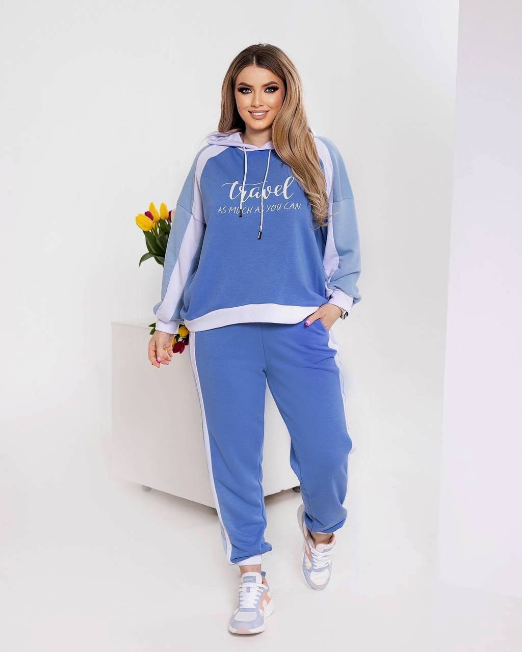 Жіночий костюм спортивний двійка (Штани + Худі) Розміри 48-50, 52-54, 56-58, 60-62 ( МОД:754сев)