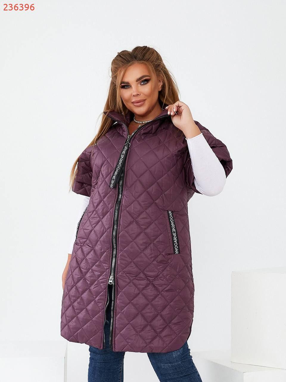 Стильна стегана жилетка зі спущеним рукавом, якісна фурнітура, нашивка